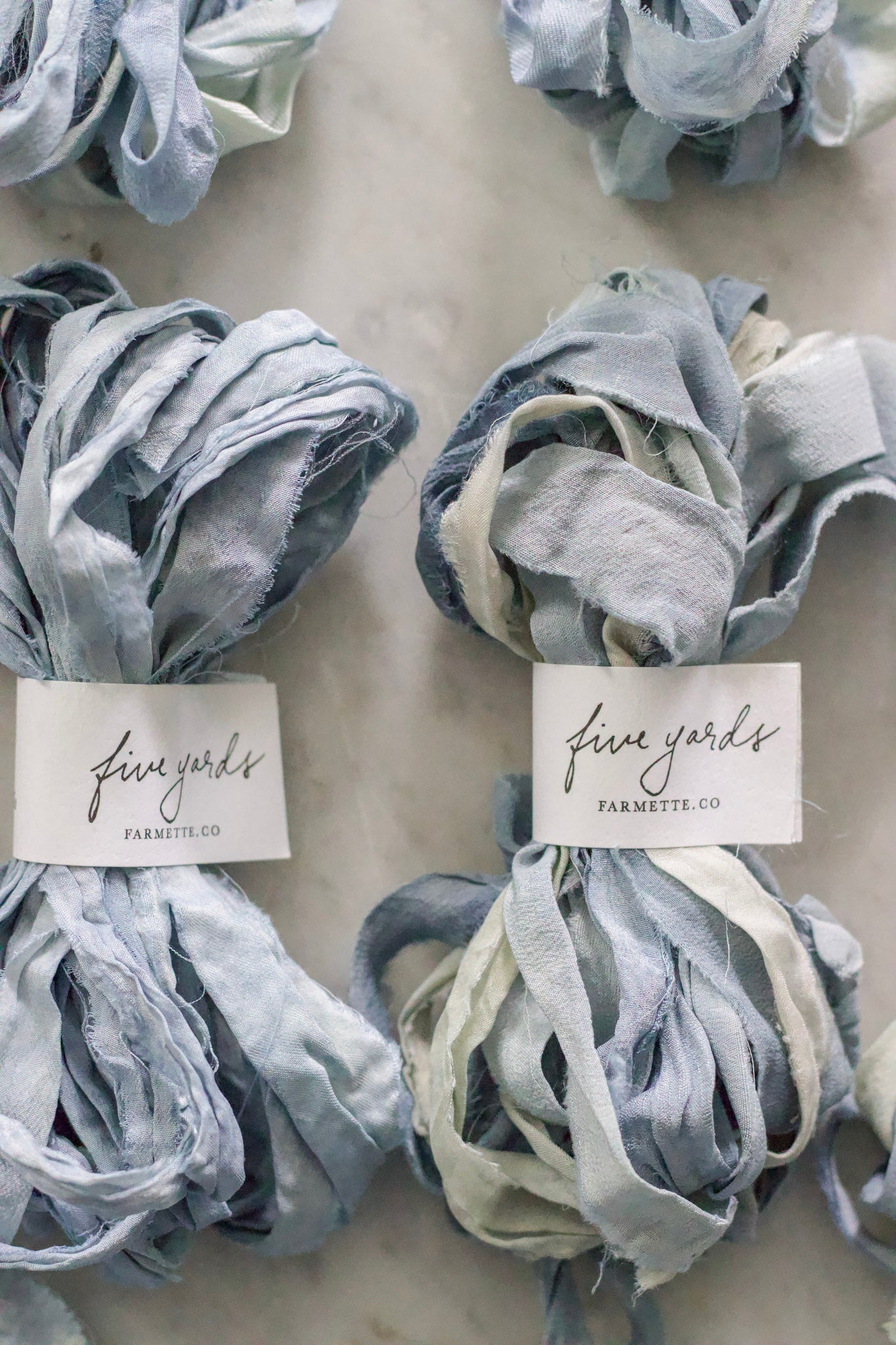 Five yards of botanically-dyed silk ribbon. 100% silk sewn by artisans in India & botanically-dyed by hand from plant extracts by Farmette in their California studio.