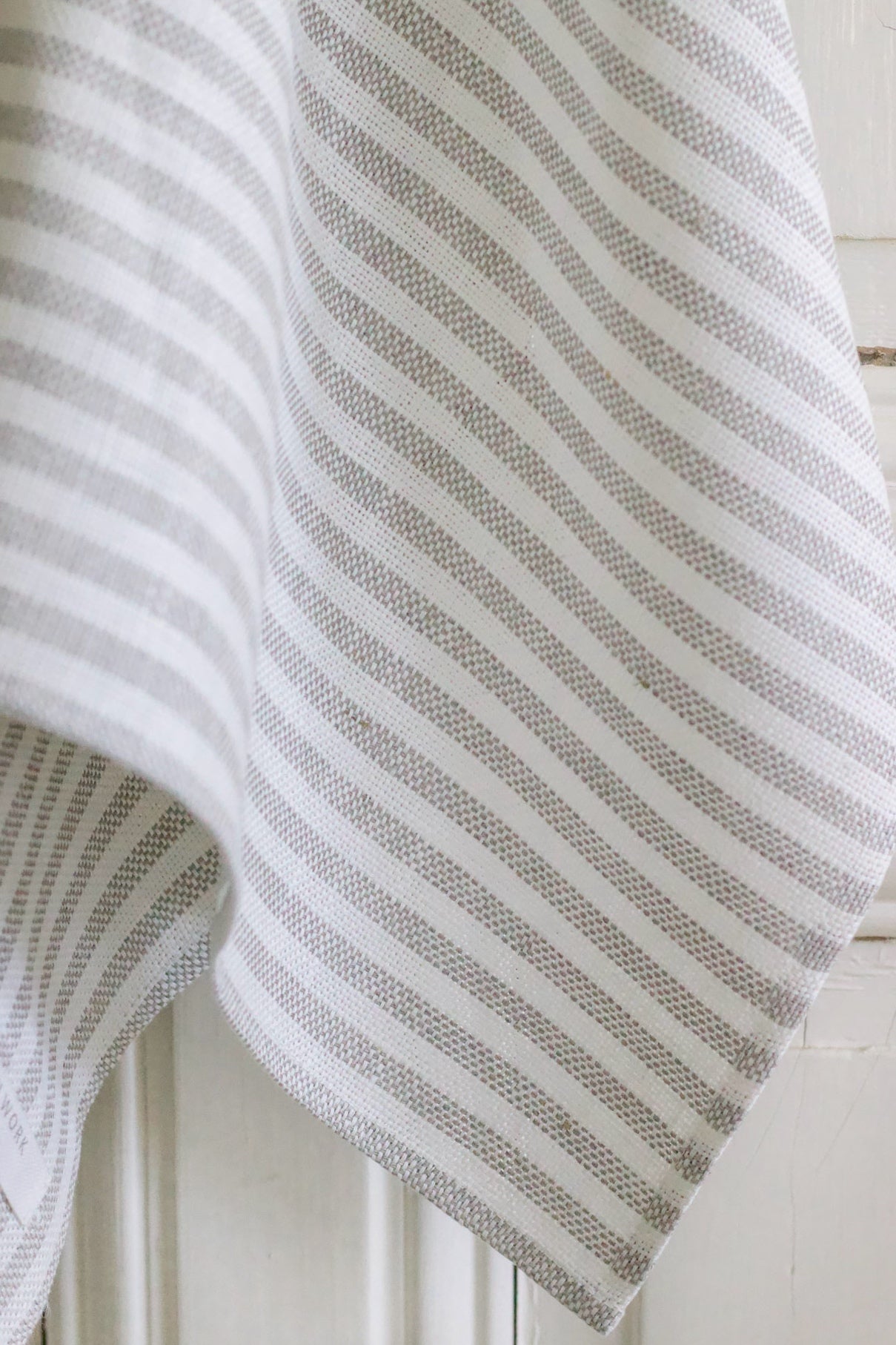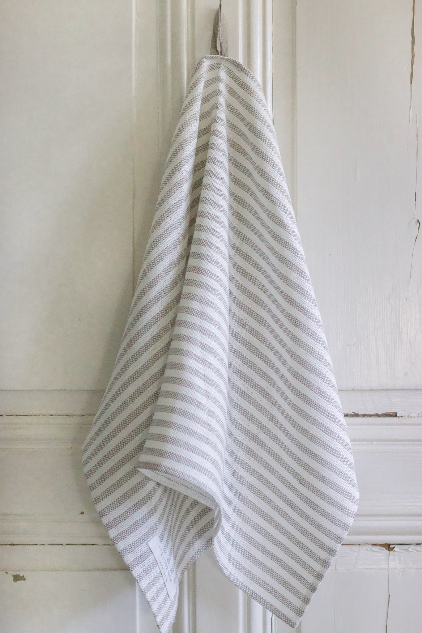 A thick weave linen that is long-lasting and absorbent. Each towel has a handy loop sewn in for hanging.