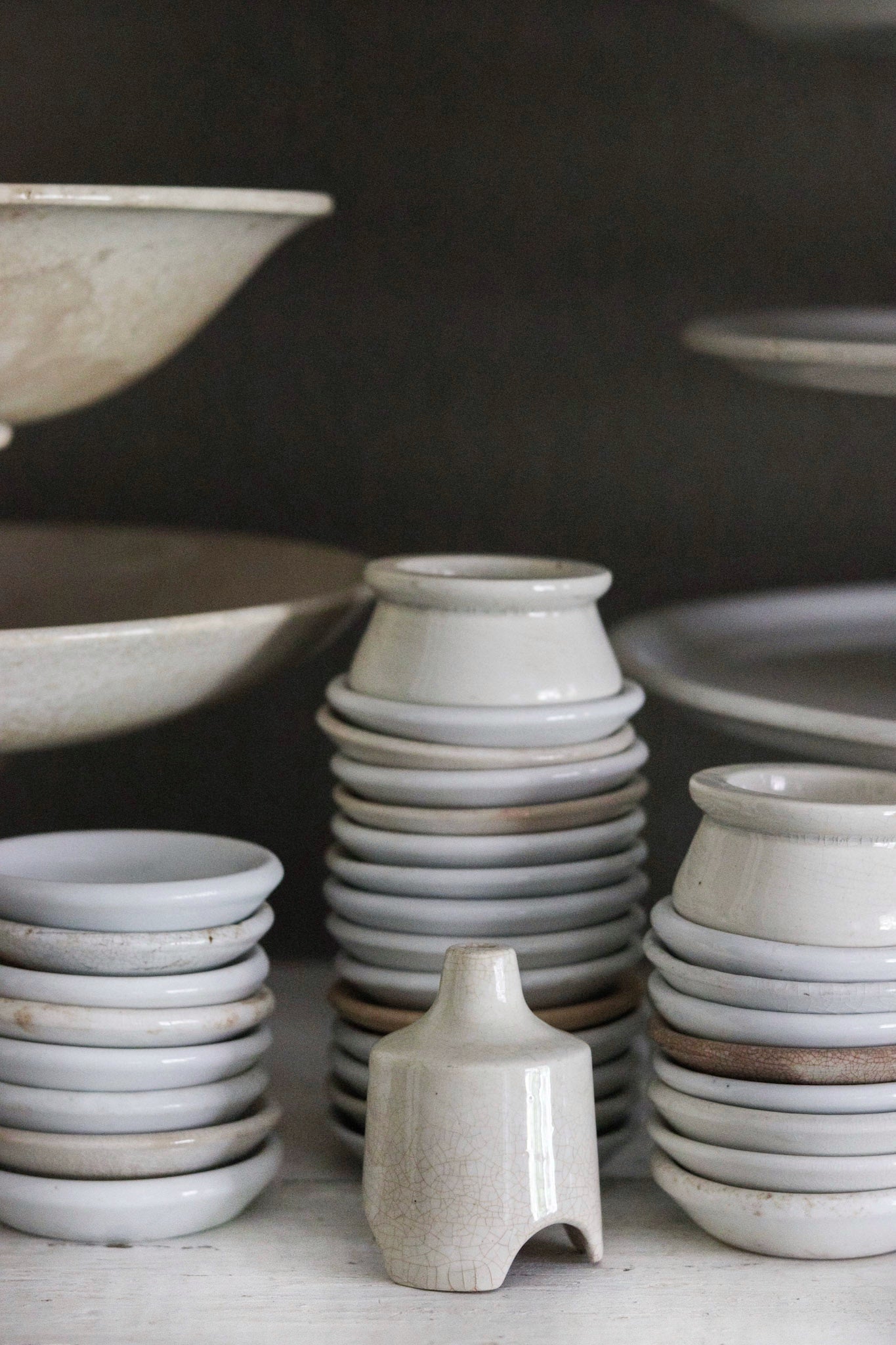 - Please see all photos for condition. Staining, crazing as shown. Staining may appear darker in person. Other items shown are not included.