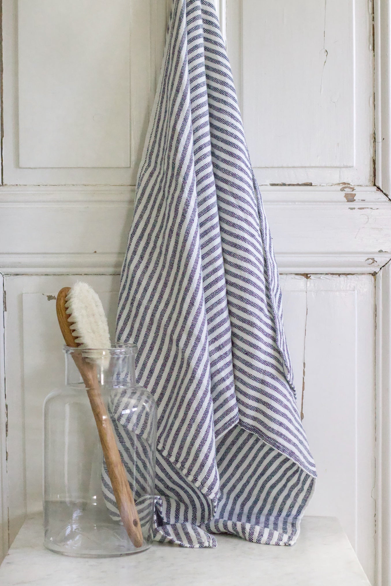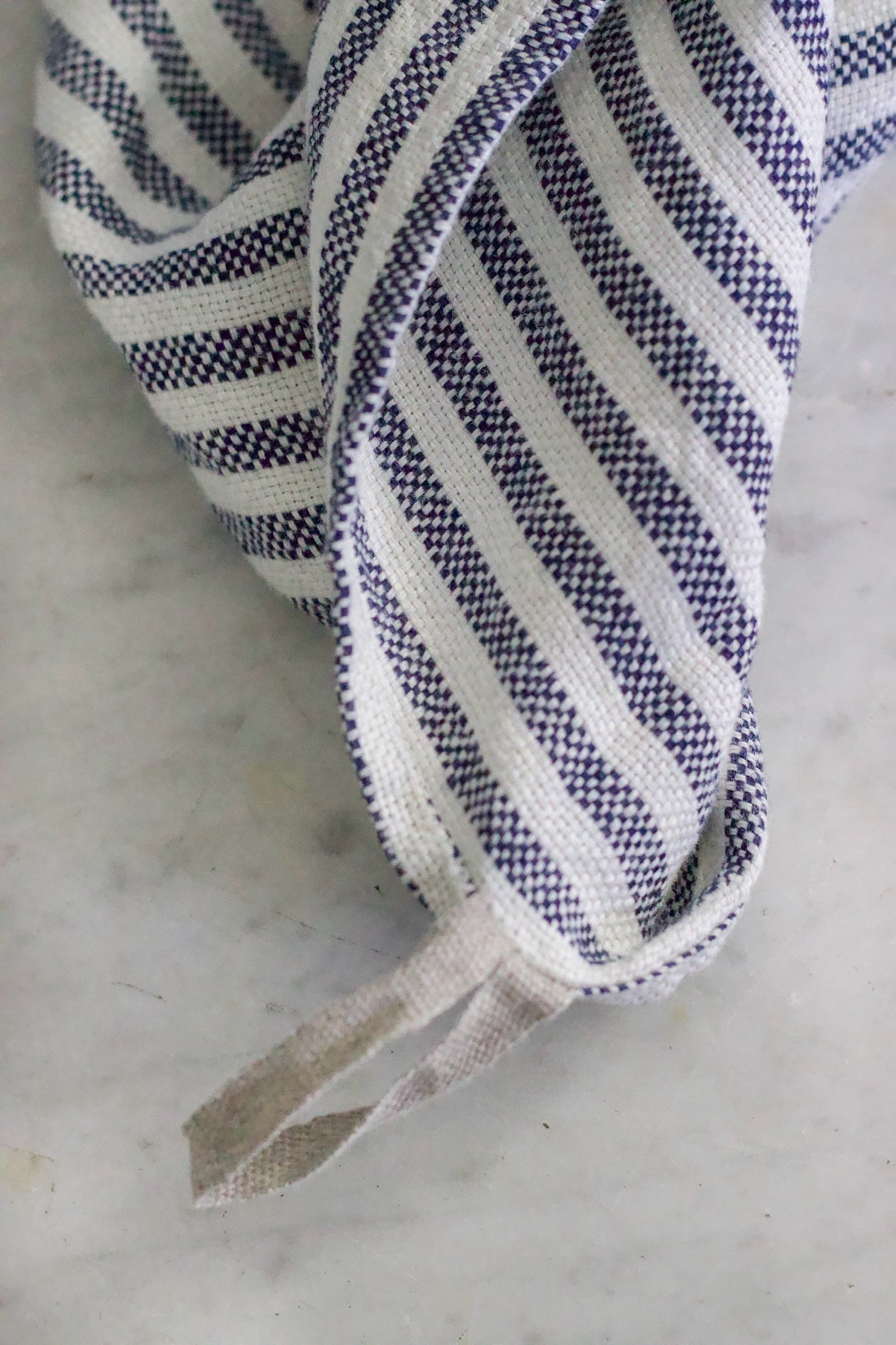 Thick chambray weave linen that is long-lasting and absorbent. Each towel has a handy loop sewn in for hanging.