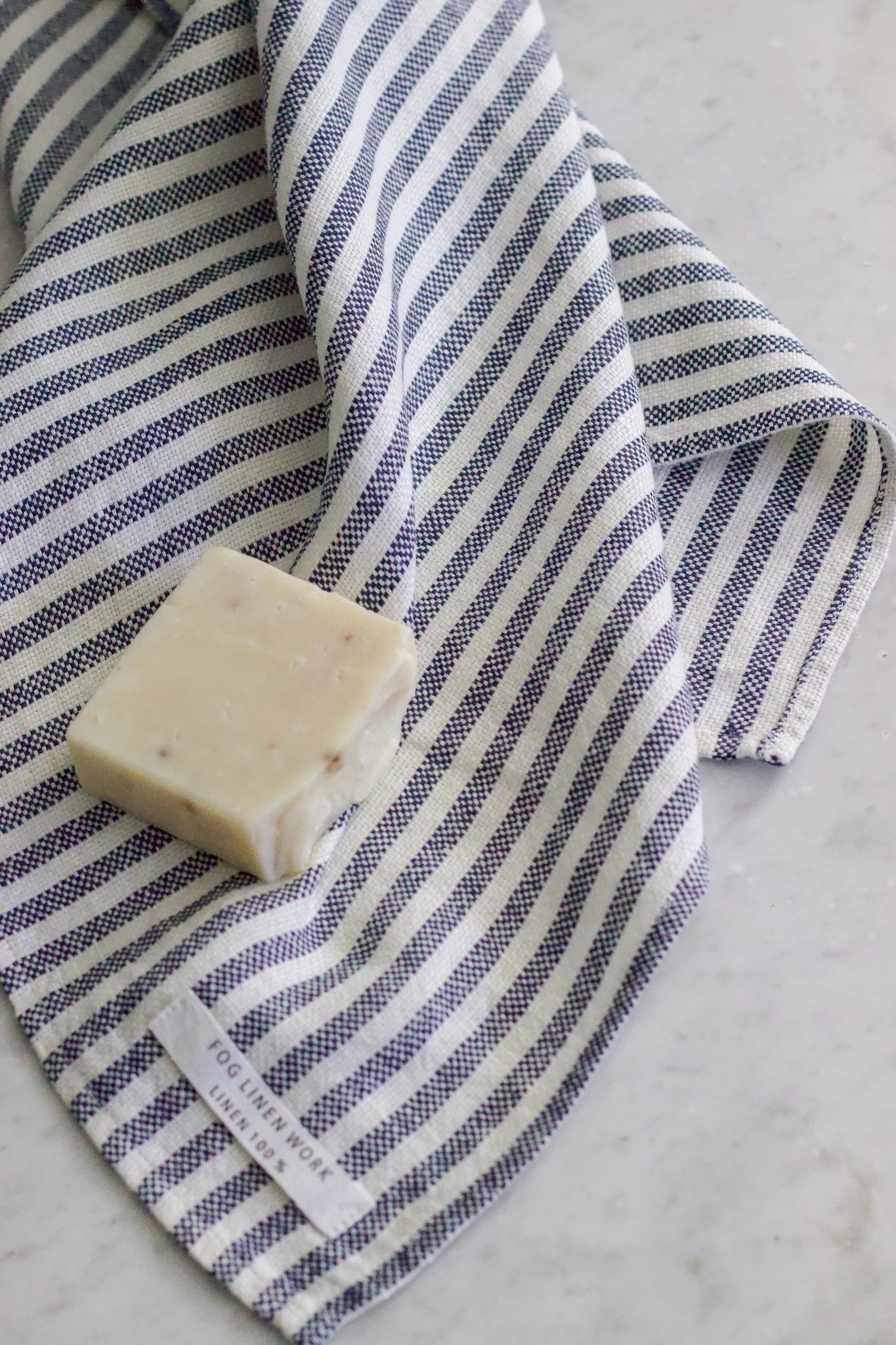 A thick weave linen that is long-lasting and absorbent. Each towel has a handy loop sewn in for hanging.
